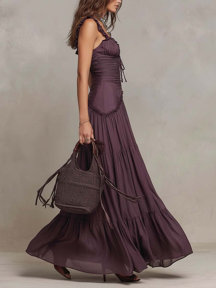 Boho Volant gerafftes mehrlagiges Chiffon-Maxikleid